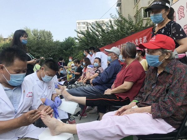 8月28日,“北京榜样”孟建设、孟阳父子带领他们的志愿服务团队来到北京市东城区和平里二区社区,为在战“疫”值守的志愿者们送去修脚、理发、健康咨询等服务,并送去鸡蛋、玉米等慰问品。志愿服务团队慰问志愿者不仅展现了东城居民同心战“疫”的决心,同时也展现了战友之间的相互配合和相互关爱。